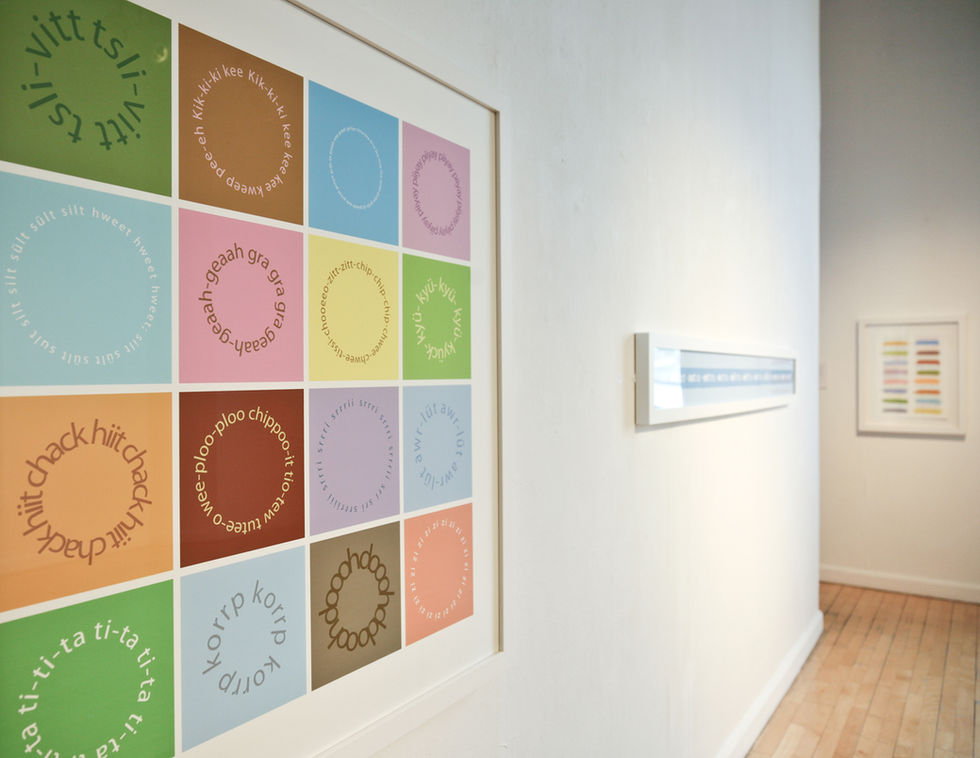 Both before and after each meander, Mike explores the history of the place he walks through. He then takes the research gathered whilst on these meanders into his studio, and assimilates it whilst, in the process, making a series of abstract images and integrating various elements of text into these images. Text and colour are important in the architecture of his work; a record of flora and fauna seen or heard, the familiar unfamiliarity of vernacular names, dialects of birds and plants once known but fleetingly remembered, hinting back to the specificity of places and their ecological frameworks.